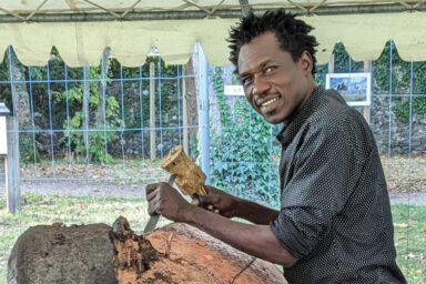 Pour celles et ceux qui ont connu le festival du film nature il y a quelques années, le nom d’Omar Oumarou Sekou n’est pas inconnu. Ce sculpteur nigérien est en effet intervenu plusieurs années sur la commune pour partager son savoir avec nos jeunes écoliers, mais aussi avec le grand public. C’est notamment à lui que nous devons la création des 5 sculptures en bois installées au parc du Jau (éléphant, crocodile, rhinocéros, hippopotame et lion) et au rond-point de l’entrée de la zone commerciale (girafe).