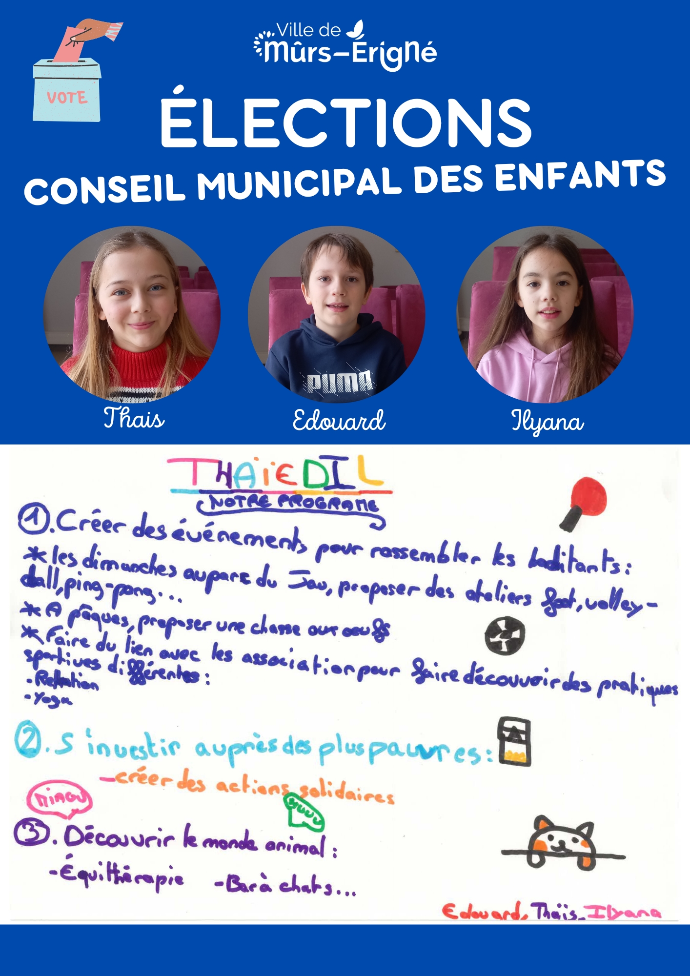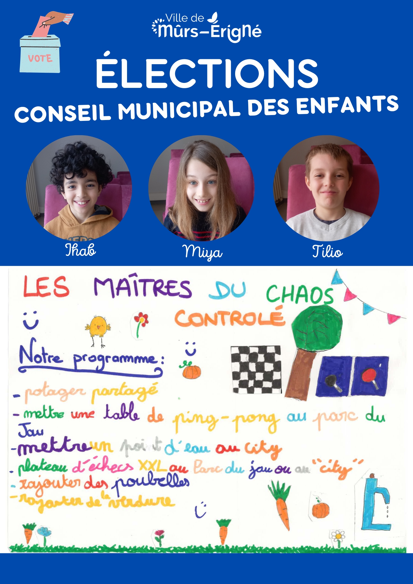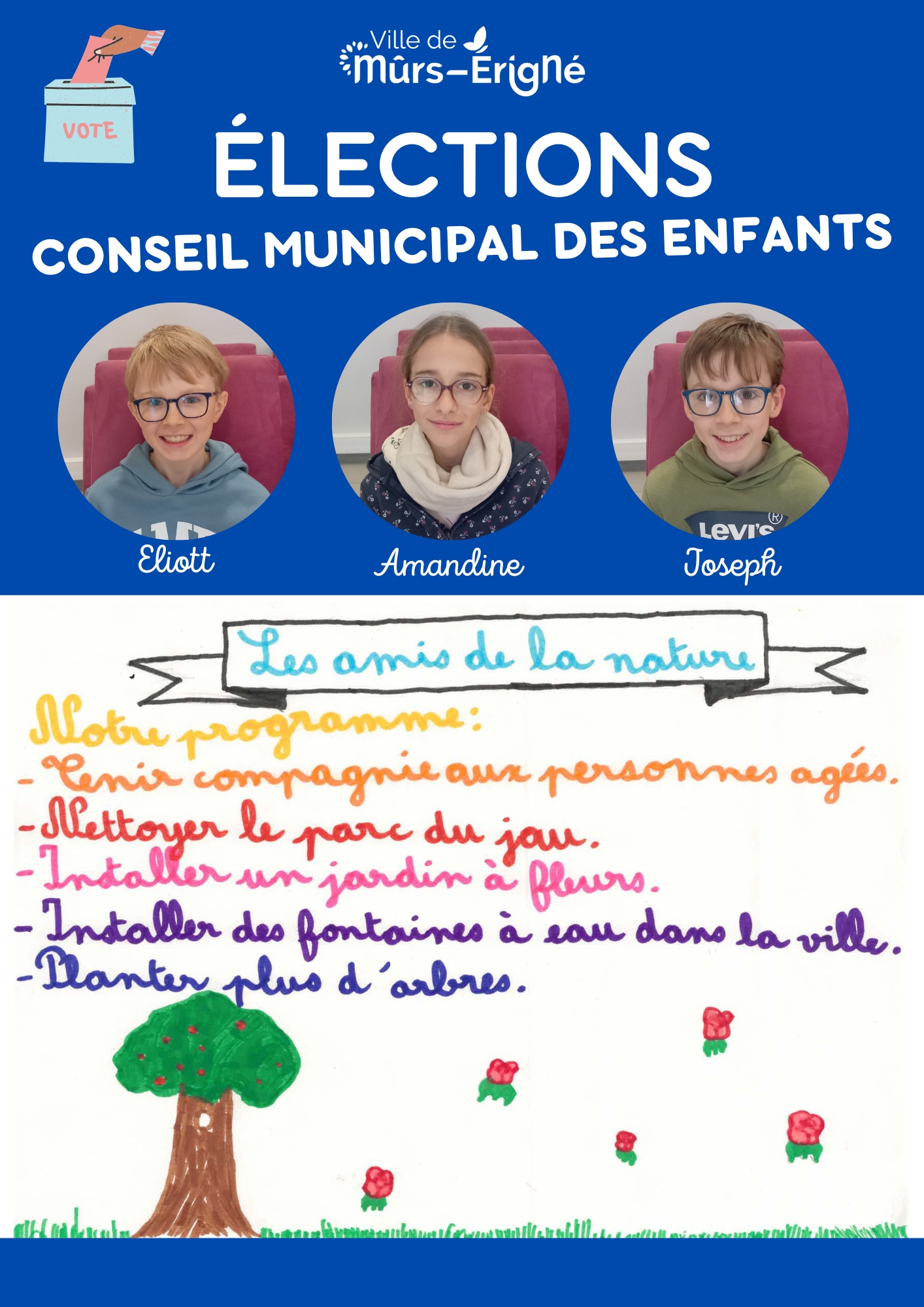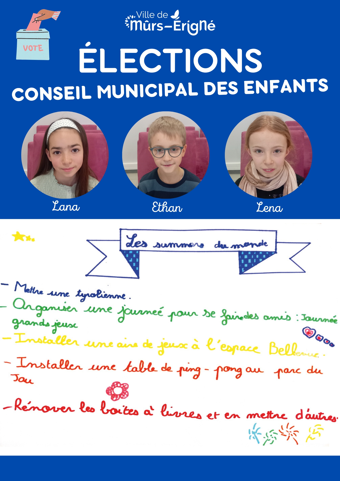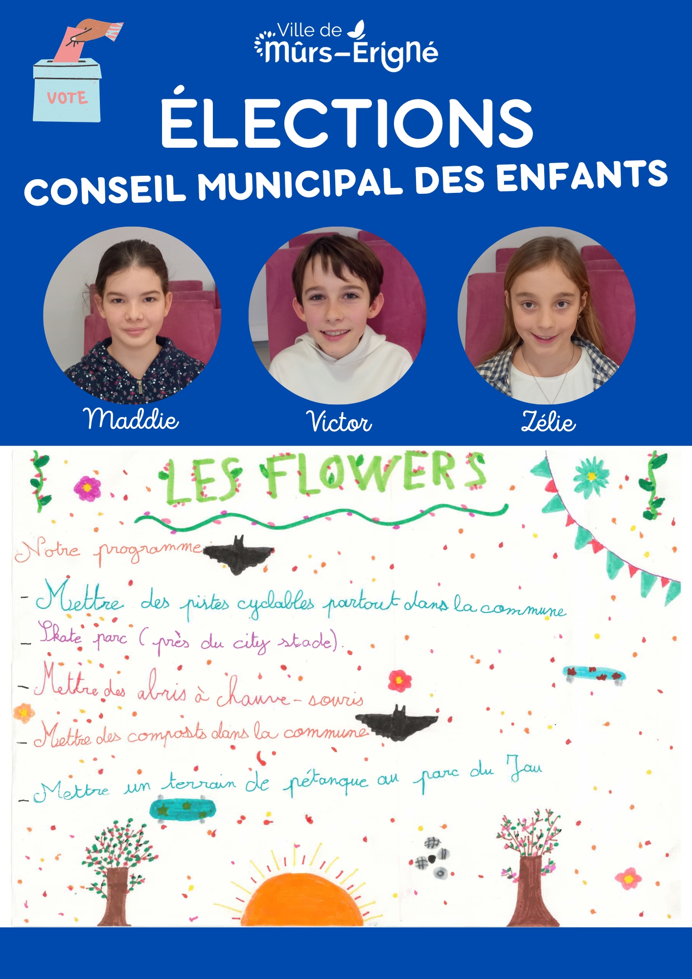 C’est une instance composée d’enfants de la commune de Mûrs-Érigné qui leur permet de :
