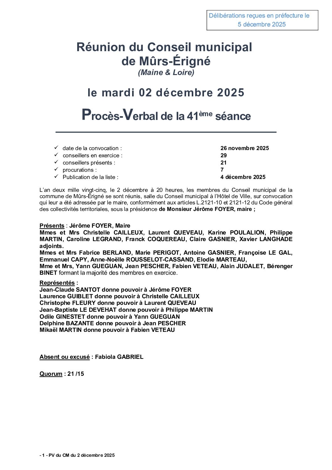 Procès-verbal de la séance du Conseil municipal du 2 décembre 2025
