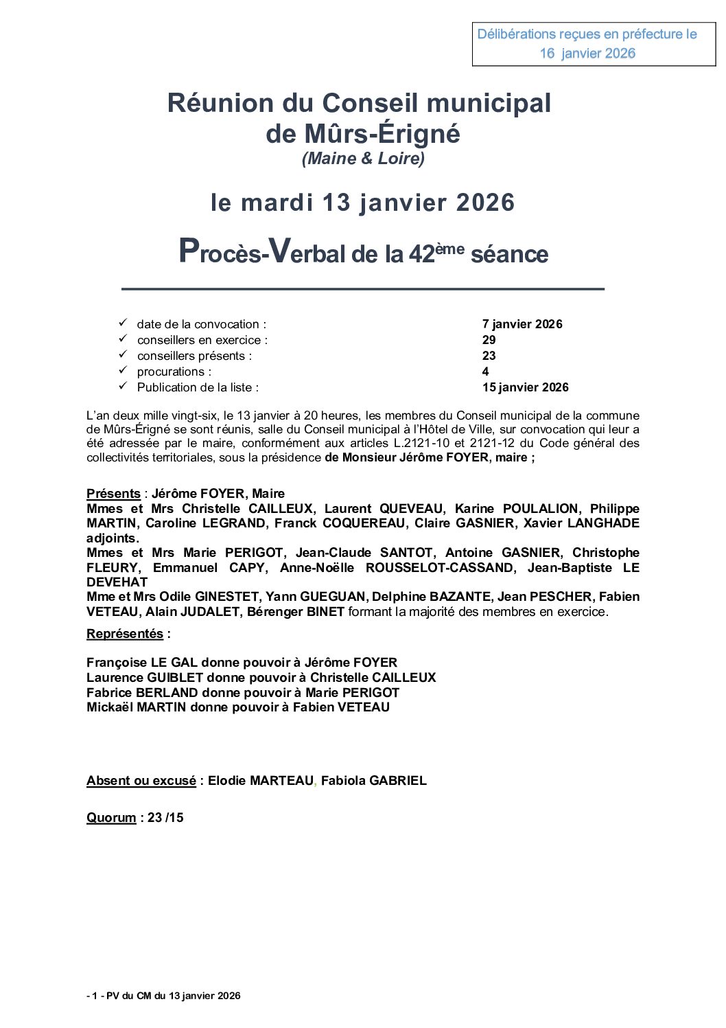 Prochaine séance mardi 3 février 2026 à 20h