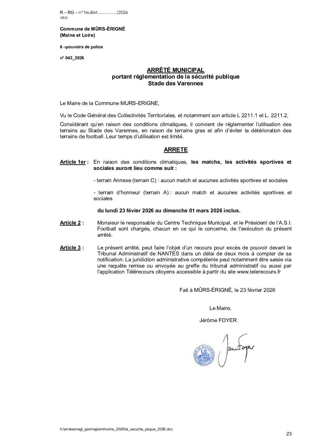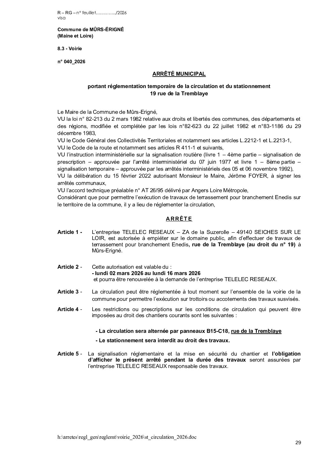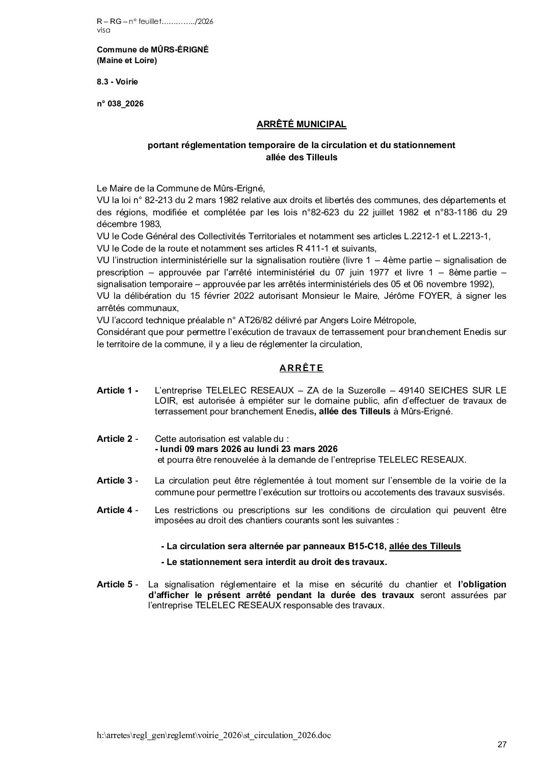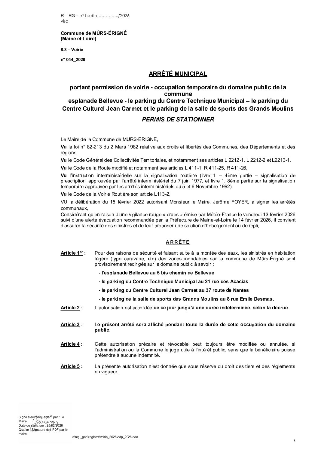 Arrêté municipal, Voirie