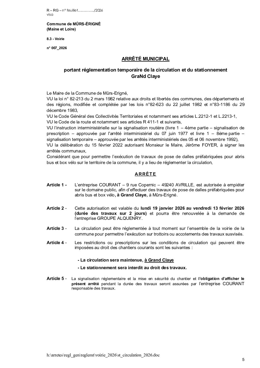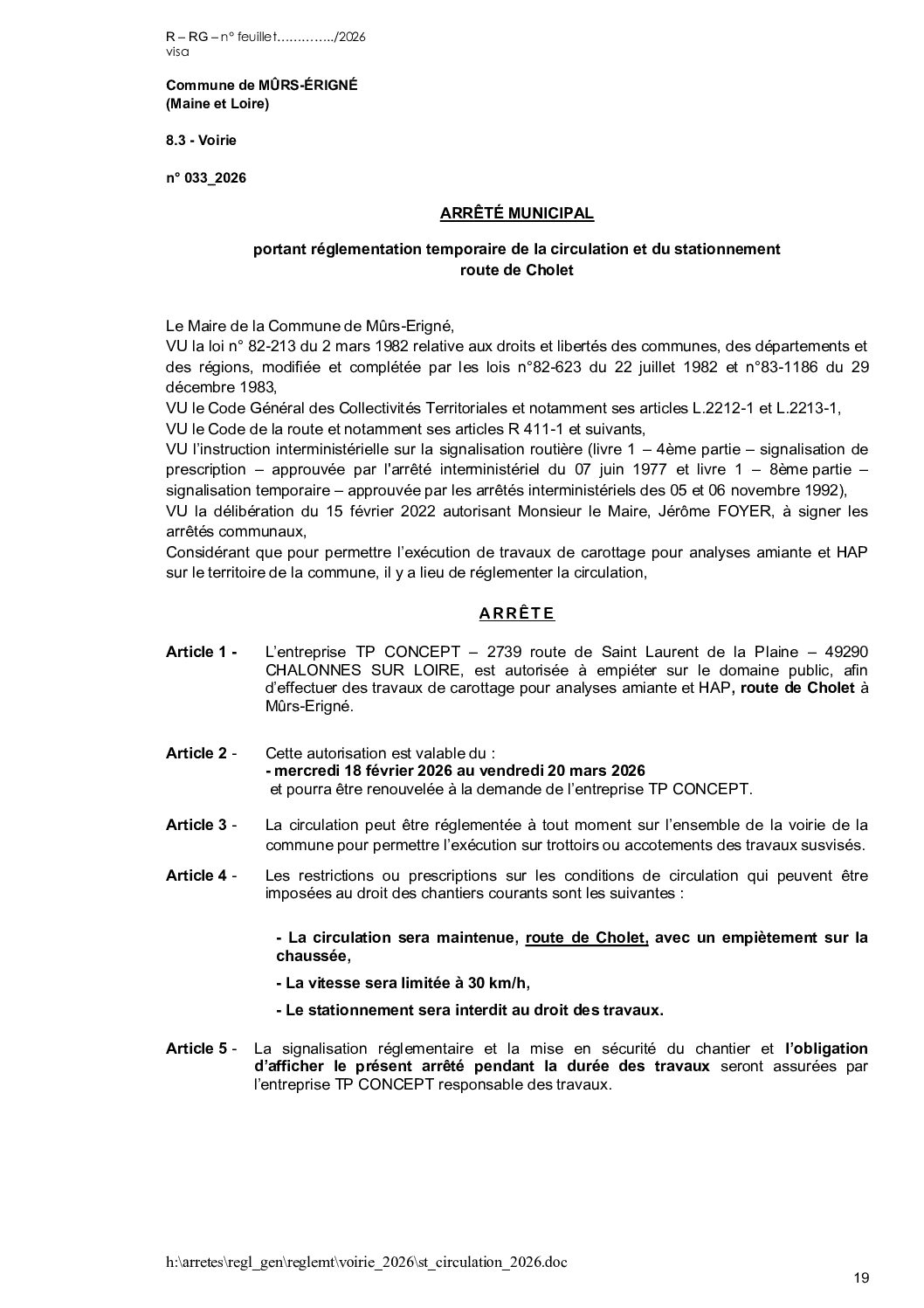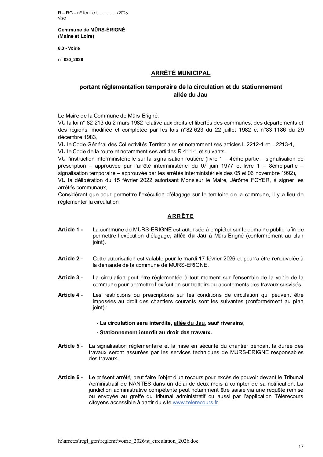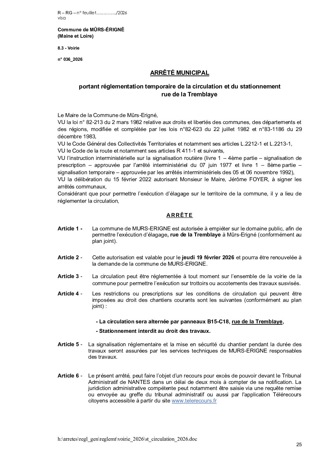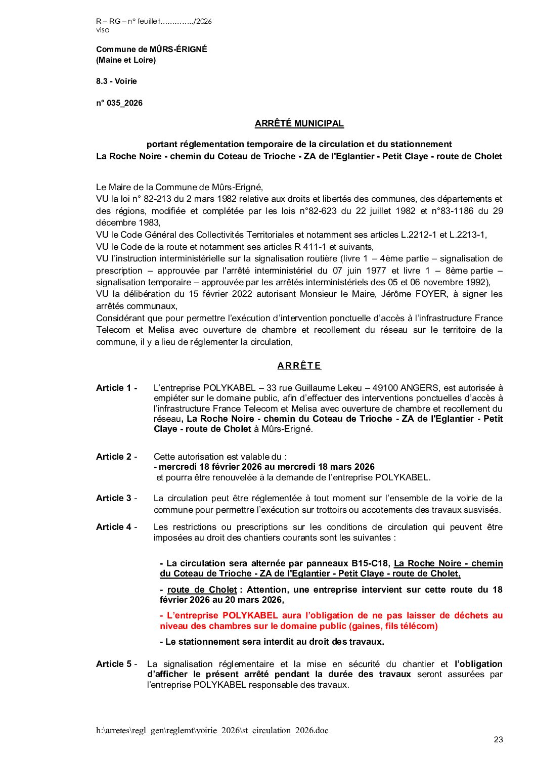 Arrêté municipal, Voirie