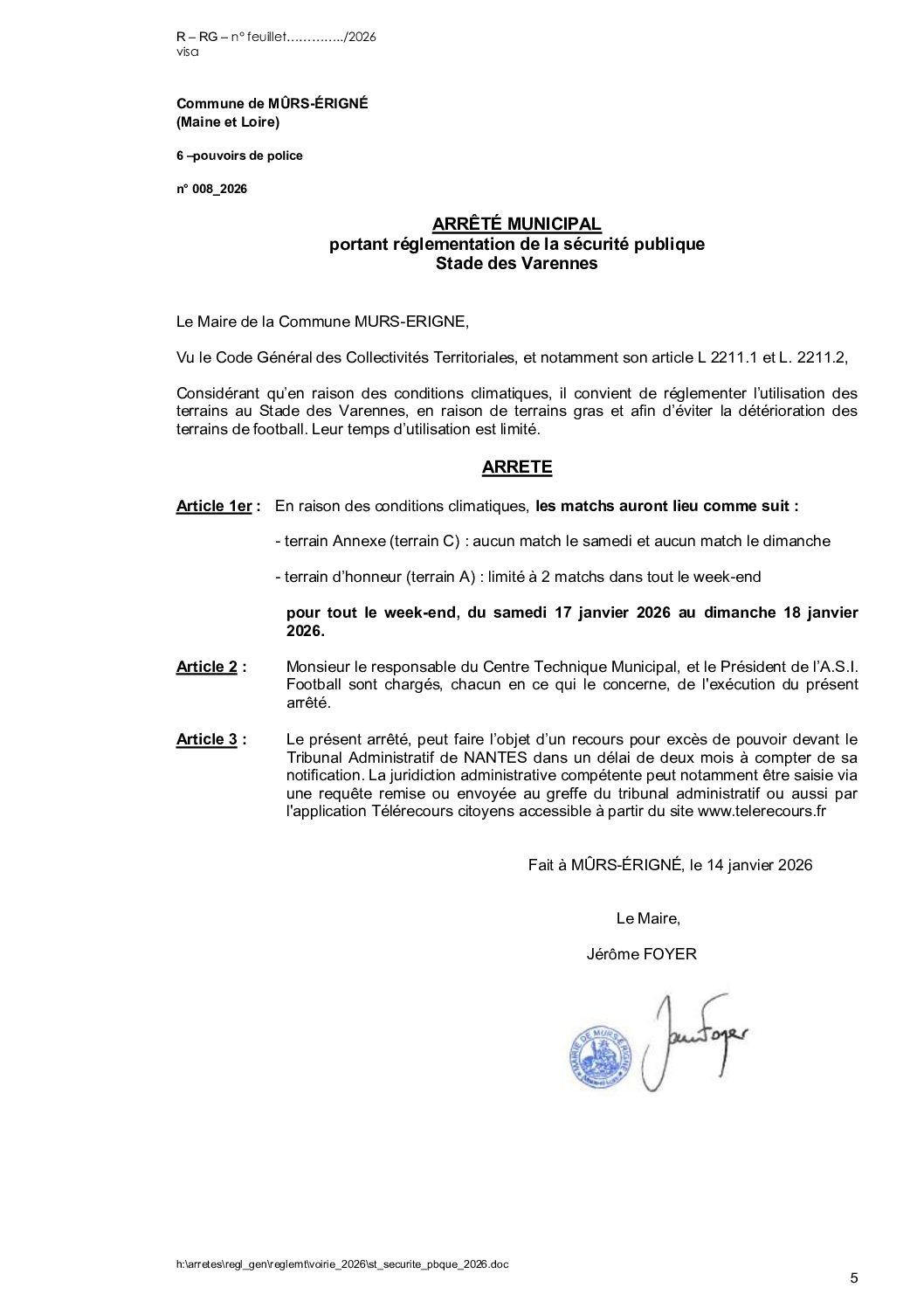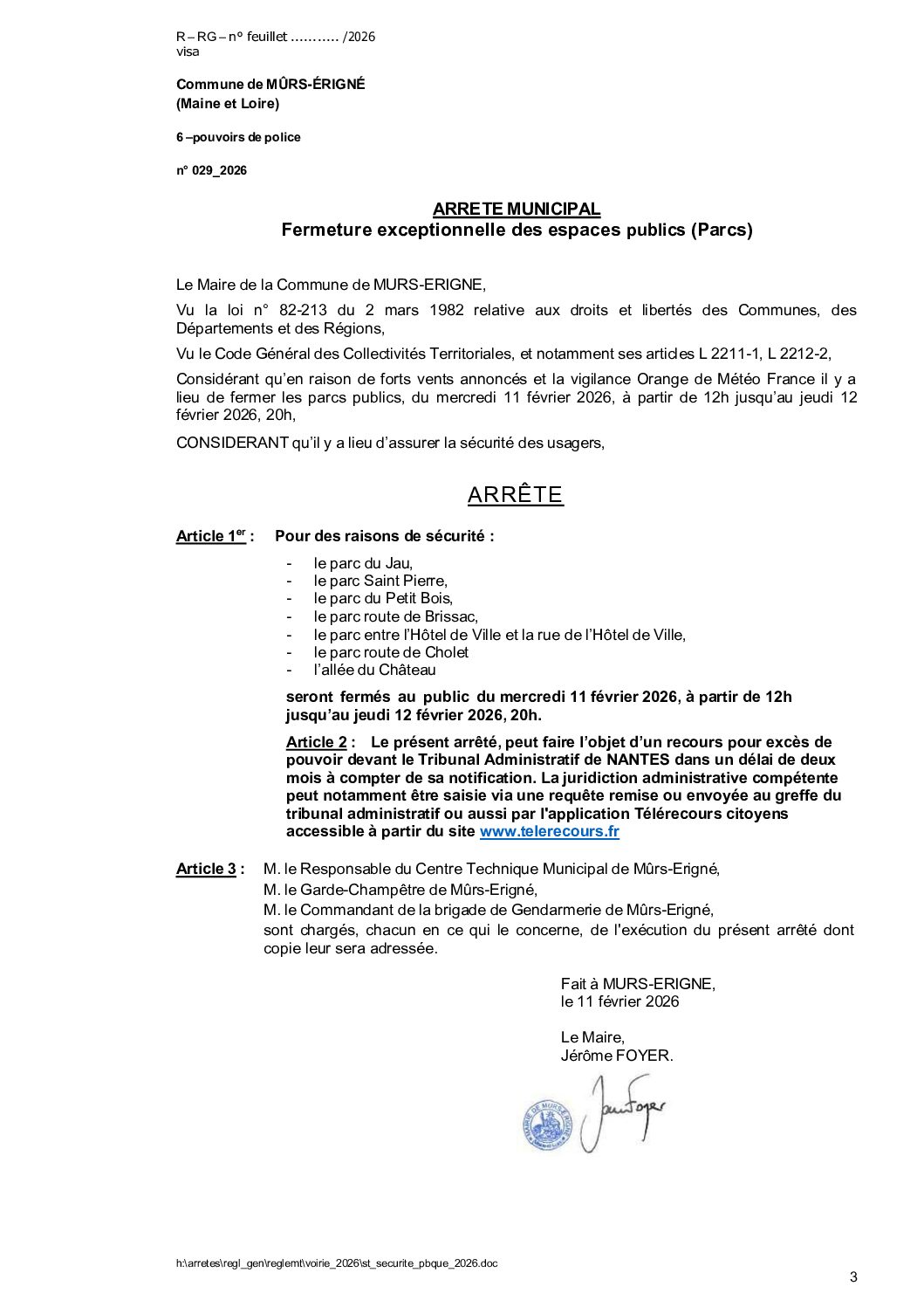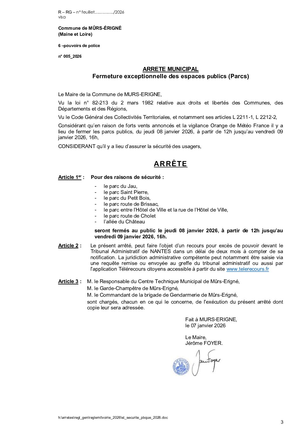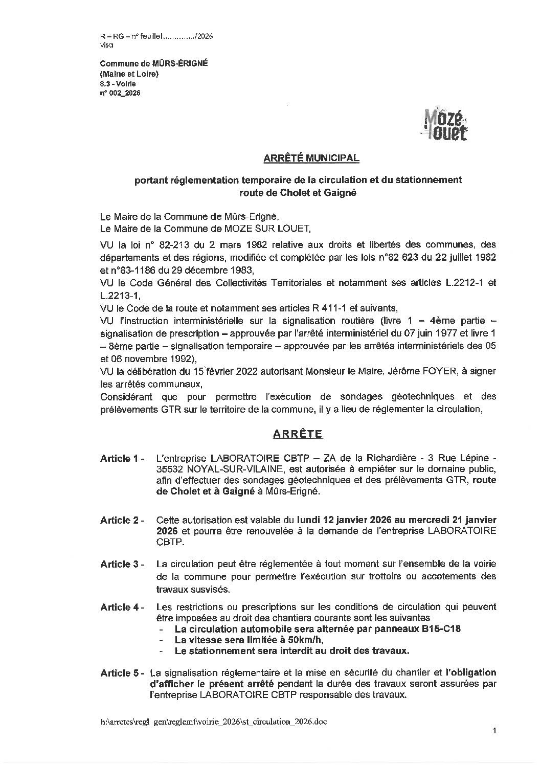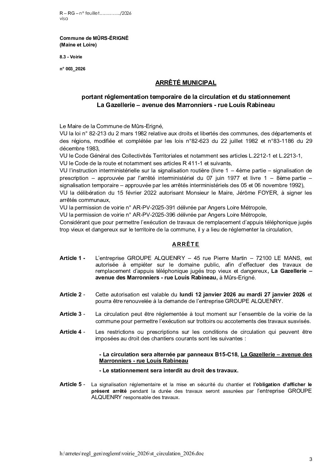 Arrêté municipal, Voirie
