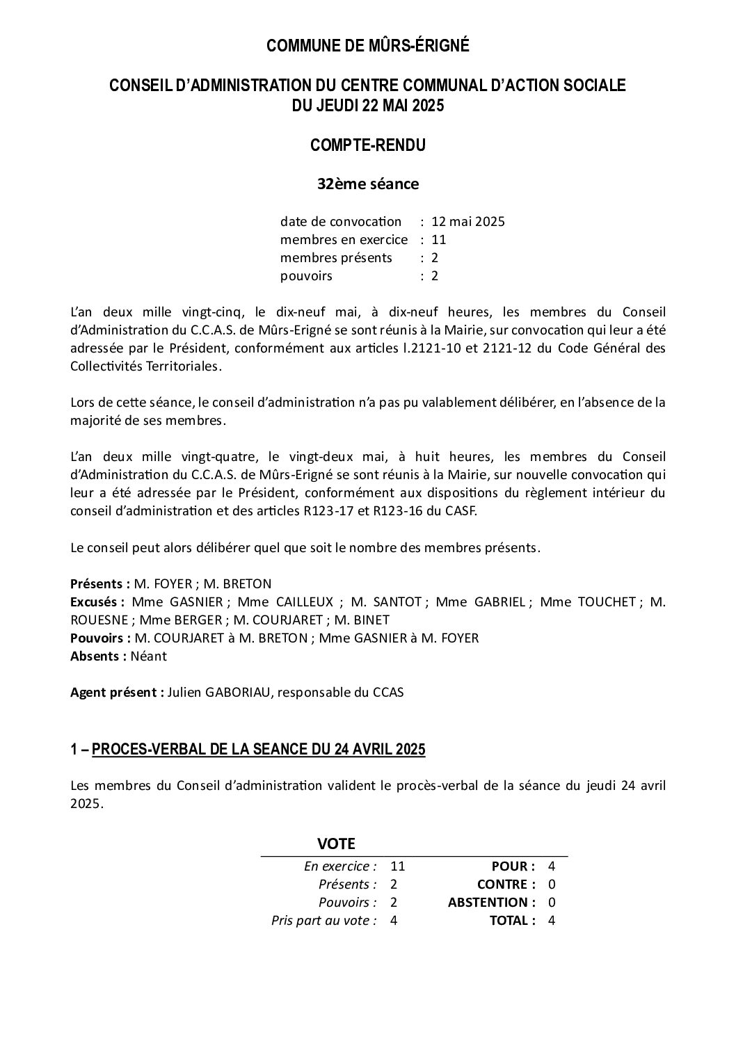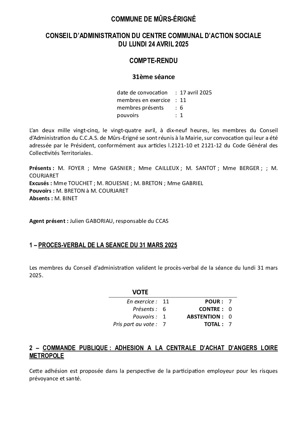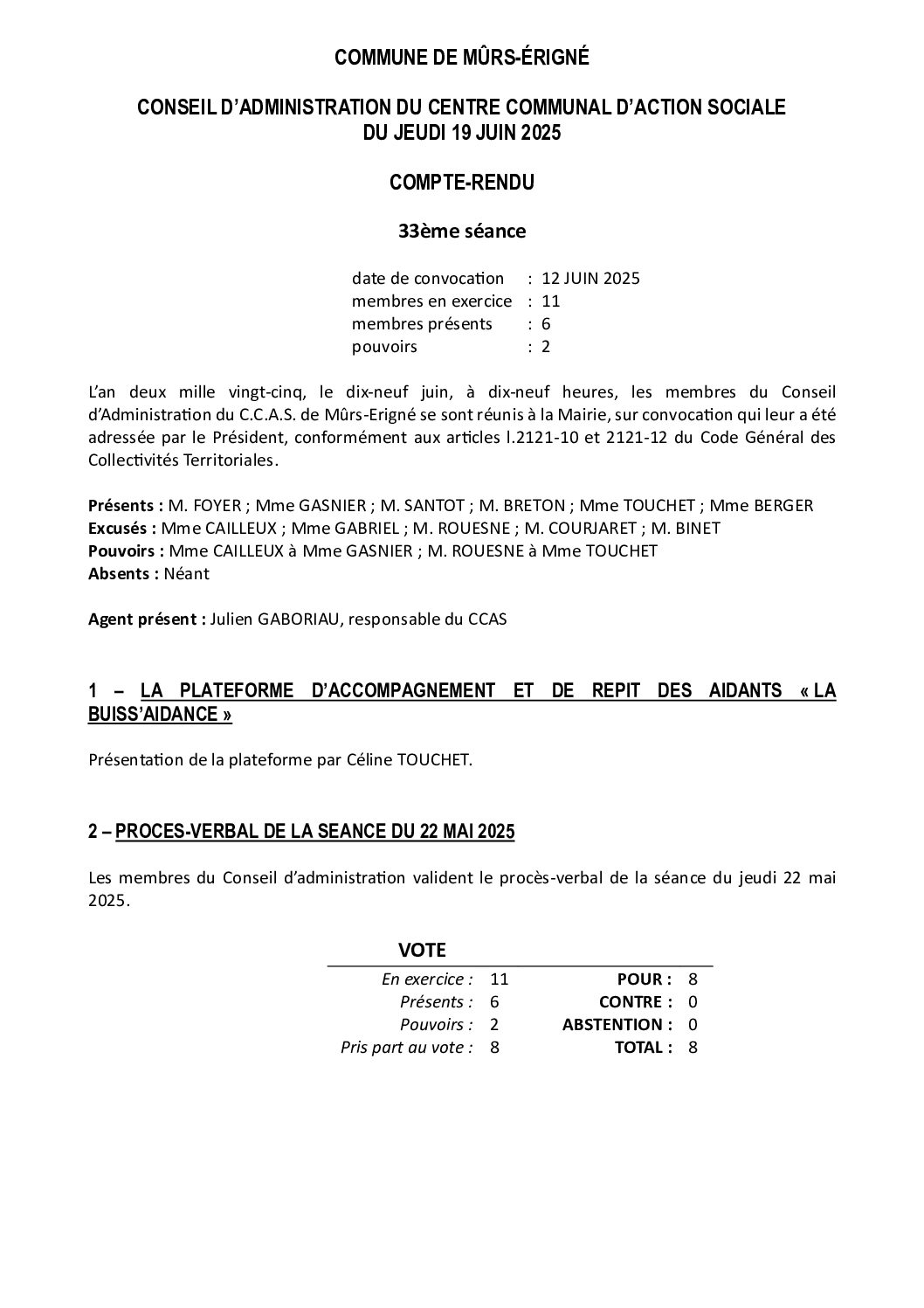 Compte-rendu du CA du CCAS